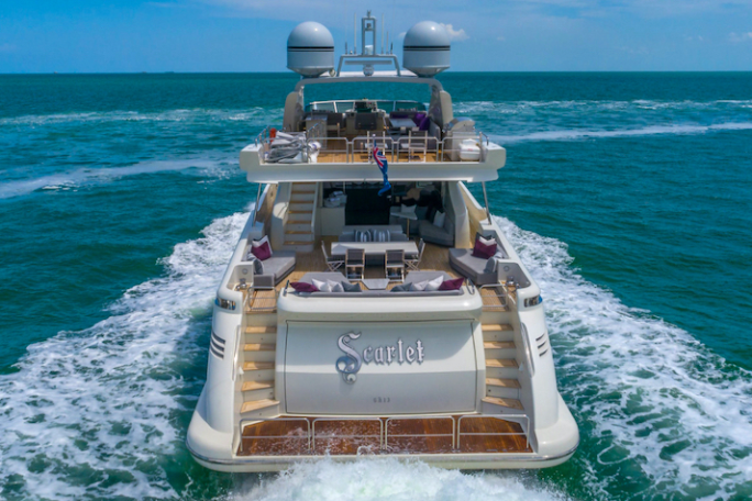 Este yate italiano combina elegancia, potencia y comodidad, ofreciendo amplios espacios exteriores para relajarse bajo el sol y zonas diseñadas para socializar. Además, cuenta con una selección de juguetes acuáticos que hacen cada travesía aún más emocionante y divertida. Ya sea para un día de diversión en el agua, un evento privado o una celebración especial, Scarlett II garantiza lujo y exclusividad en cada momento. Sus áreas abiertas y modernas crean el ambiente perfecto para disfrutar de Miami desde el mar, mientras que su diseño y prestaciones de primer nivel aseguran una navegación cómoda y segura. Scarlett II es la elección ideal para quienes buscan combinar aventura, estilo y sofisticación en alta mar.
