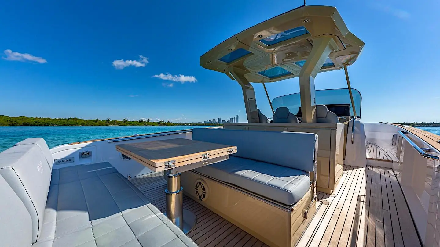 El Pardo 38 ofrece una experiencia náutica de primer nivel, combinando diseño italiano, alto rendimiento y confort excepcional. Su navegación estable y eficiente permite recorrer la costa con total seguridad y confianza. Más que una embarcación popular en Miami Beach, es una auténtica expresión de estilo, lujo y sofisticación. Cada detalle ha sido cuidadosamente diseñado para maximizar la comodidad y la elegancia, desde su amplia cubierta para tomar el sol hasta sus espacios pensados para compartir momentos únicos. Ya sea relajándose bajo el sol, sintiendo la brisa marina o disfrutando de una comida al aire libre, cada instante a bordo es especial. Reserve hoy y viva la experiencia Pardo.