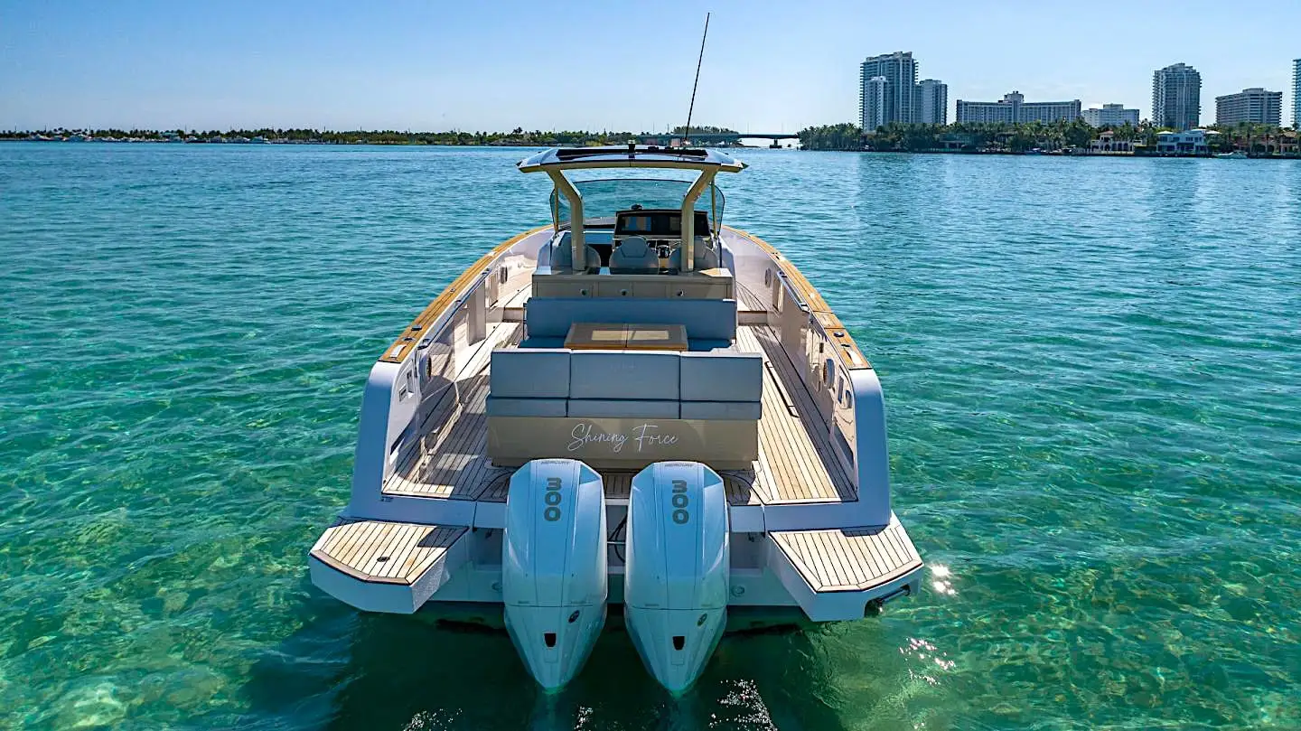 Disfrute del lujo sobre el mar a bordo de “Shining Force”, un impresionante Pardo 38 de 38 pies, construido en 2022 y disponible para alquiler en Miami Beach, Florida. Diseñado para la relajación, el entretenimiento y el disfrute al aire libre, este moderno yate es ideal para recorrer la Bahía de Biscayne, descubrir los famosos bancos de arena de Miami o navegar por el pintoresco río Miami mientras disfruta de un almuerzo inolvidable.