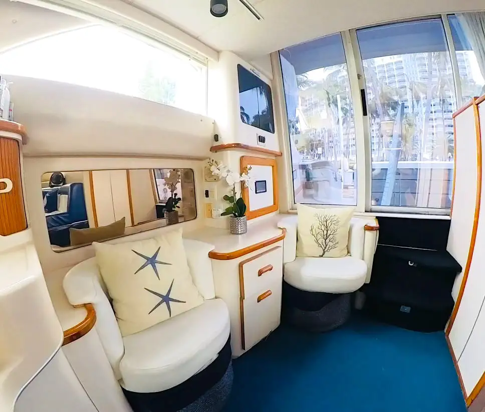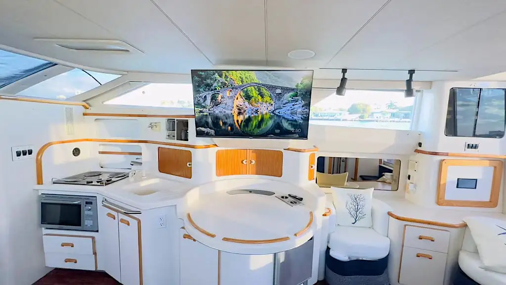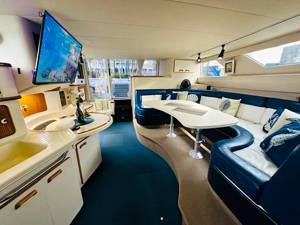 Bubbles es la opción ideal para grupos grandes de familiares y amigos que desean explorar la Bahía de Biscayne con total confort, estilo y diversión. Este yate de alquiler en Miami Beach se distingue por su excelente mantenimiento y su condición impecable, listo para navegar en cualquier momento. Desde el primer momento en el muelle hasta el regreso al puerto, quedará impresionado por su estética refinada y su distribución inteligente, pensada para maximizar el espacio y la comodidad a bordo. Cada detalle ha sido cuidadosamente diseñado para ofrecer una experiencia náutica superior, donde el lujo, la funcionalidad y el disfrute se combinan a la perfección. Descubra Miami desde el agua y viva momentos inolvidables a bordo de Bubbles.