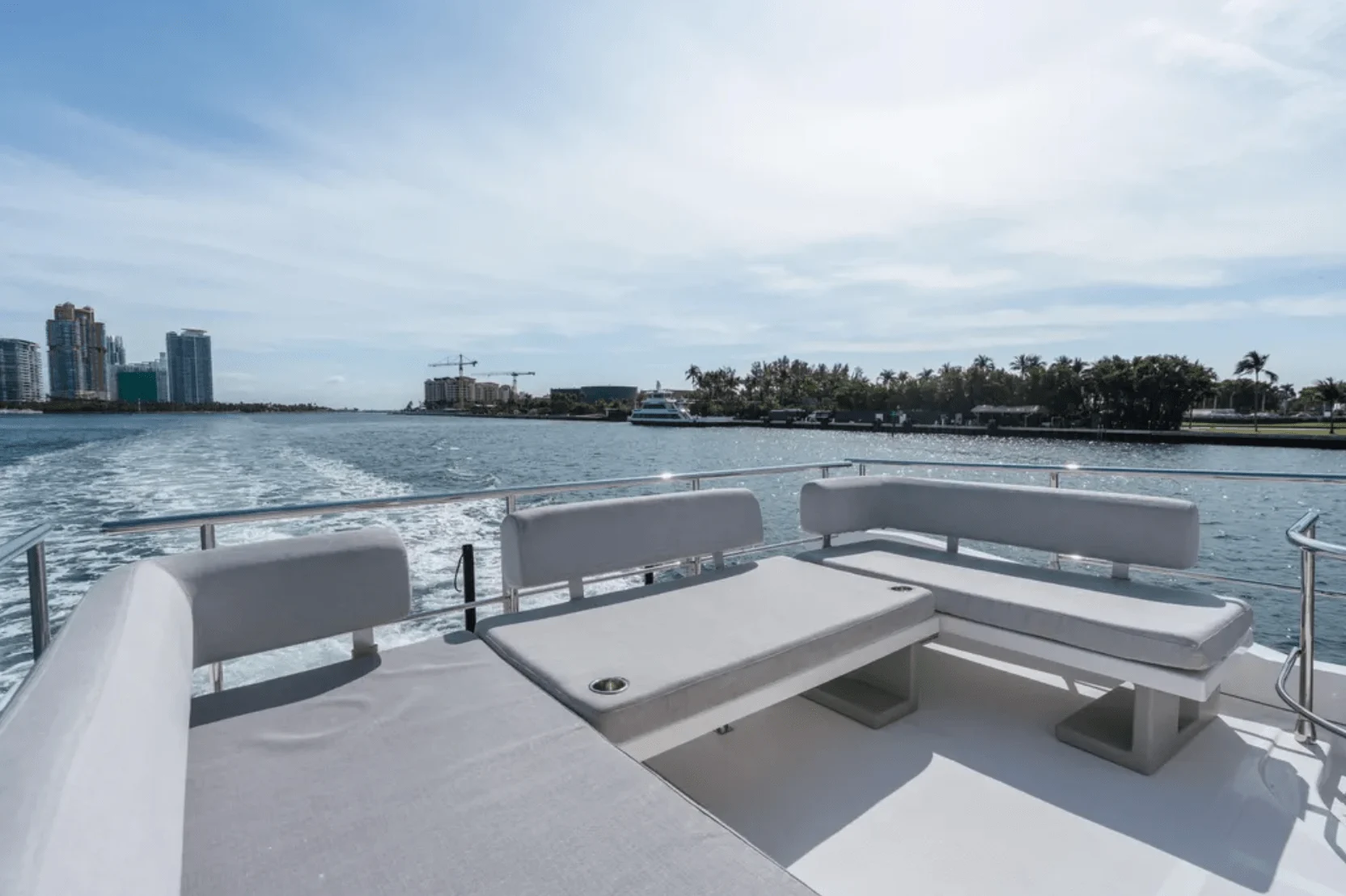 Suba a bordo de este elegante yate Azimut de 50 pies para alquilar en Haulover Park Marina y experimente la combinación perfecta del icónico diseño italiano con la sofisticación de Miami Beach. Con sus líneas elegantes, amplios soláriums y acogedoras zonas sociales al aire libre, este yate está diseñado para celebraciones con estilo y días inolvidables en el agua. Disfrute de refrescantes cócteles mientras su tripulación profesional se encarga de cada detalle, desde una navegación tranquila hasta el entretenimiento y las vistas panorámicas del océano.