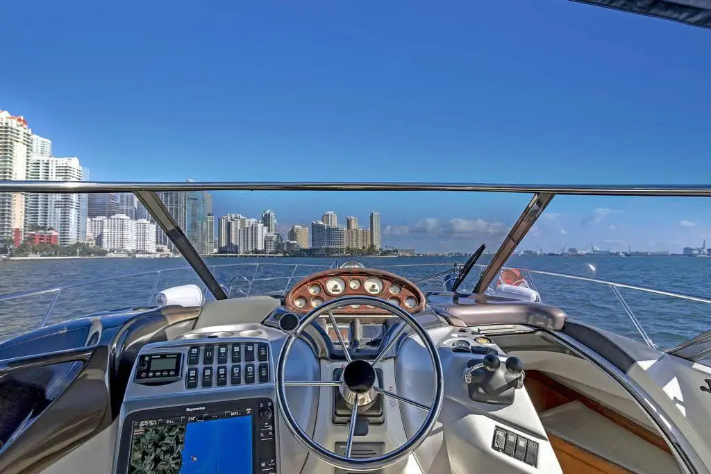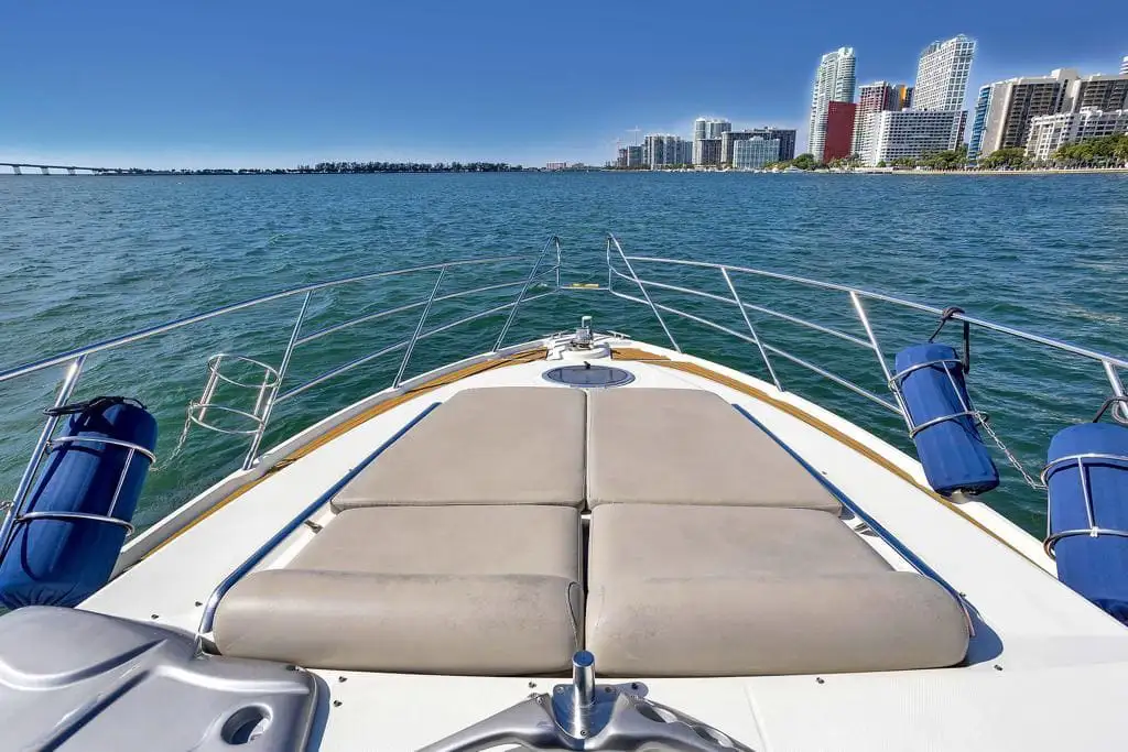 Descubra este exclusivo yate de alquiler en Rickenbacker Marina, en Key Biscayne, Florida. Nuestro elegante Cranchi de 50 pies combina diseño sofisticado, gran confort y precios competitivos, ofreciendo experiencias memorables en el agua y posicionándose como una opción preferida para alquileres de un día. Reúna a familiares y amigos para disfrutar de una jornada llena de diversión mientras navega por las aguas cristalinas de la Bahía de Biscayne, admira lujosas residencias frente al mar y contempla una espectacular puesta de sol sobre el skyline de Miami.