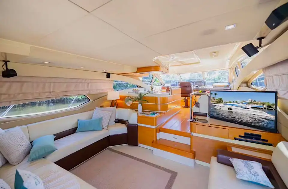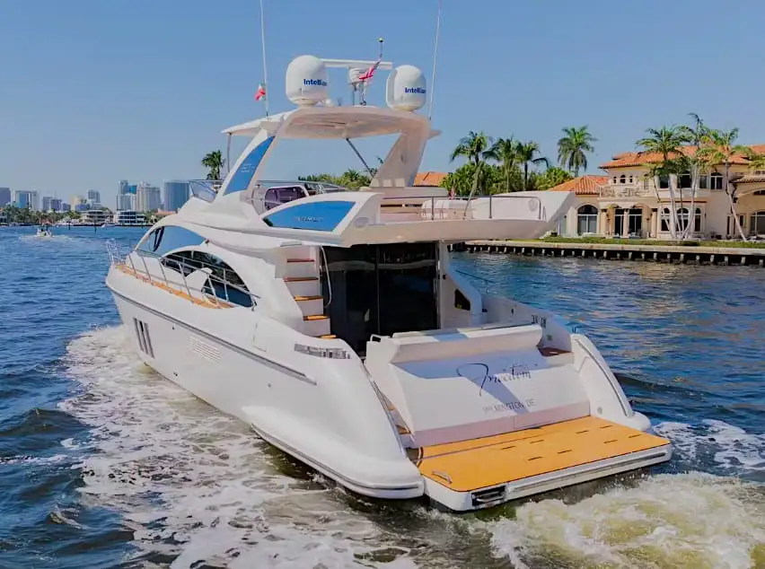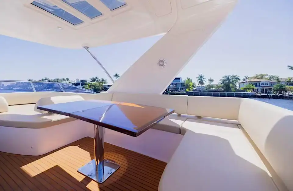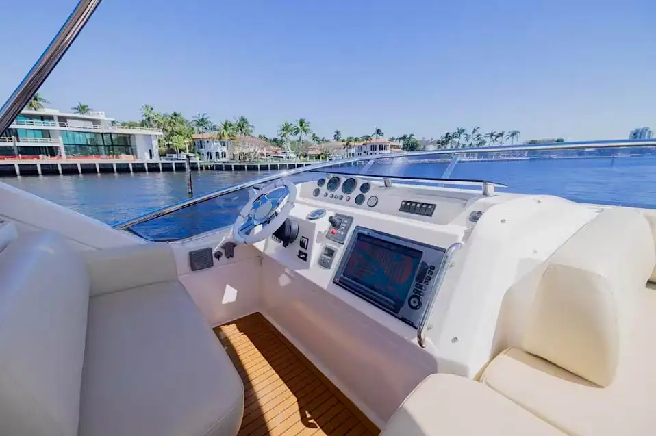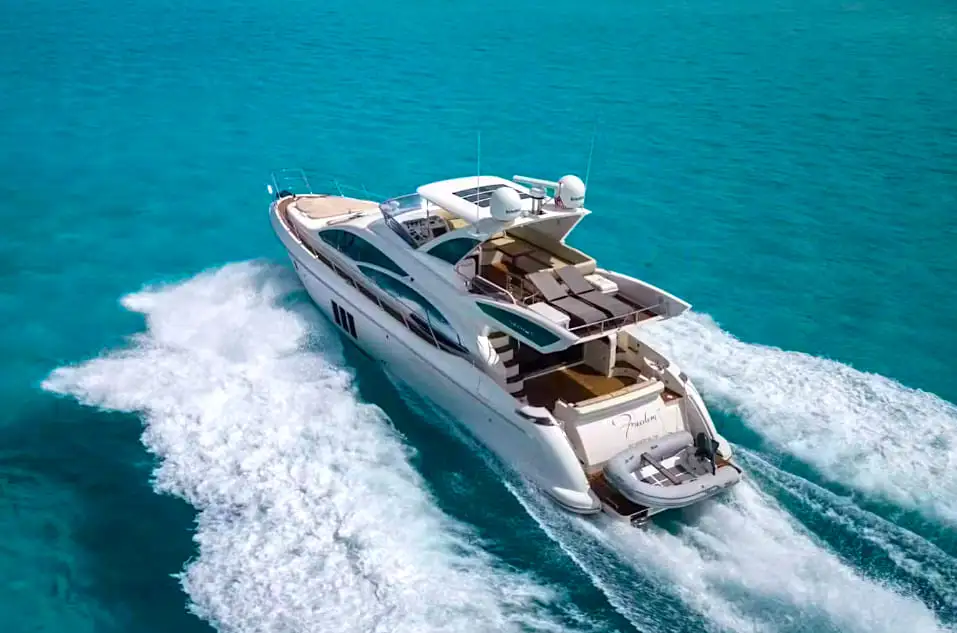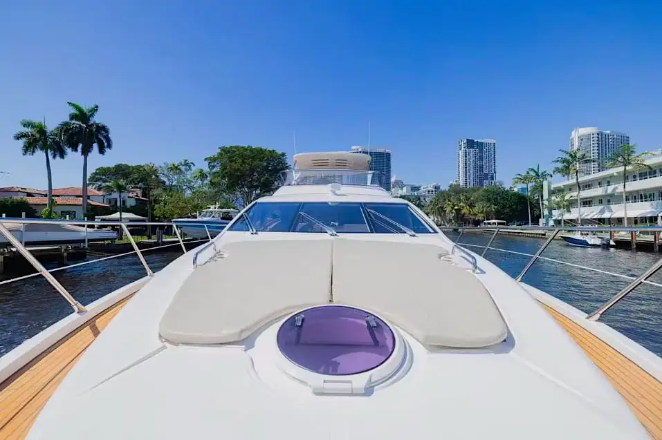 Descubra el lujo y la sofisticación a bordo de “Freedom”, un elegante Azimut de 60 pies disponible para alquiler en Miami Beach Marina, Florida. Ideal para recorrer la Bahía Biscayne y sus alrededores, este yate destaca como una de las opciones más exclusivas del mercado. Su amplia cubierta exterior es perfecta para relajarse, tomar el sol y disfrutar de vistas espectaculares. Además, cuenta con un avanzado sistema de atraque inalámbrico con joystick, que garantiza maniobras suaves, precisas y seguras, adaptándose con facilidad a cualquier espacio.