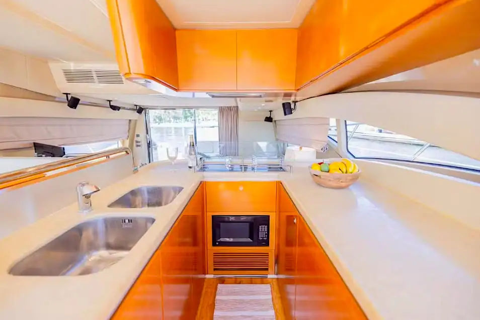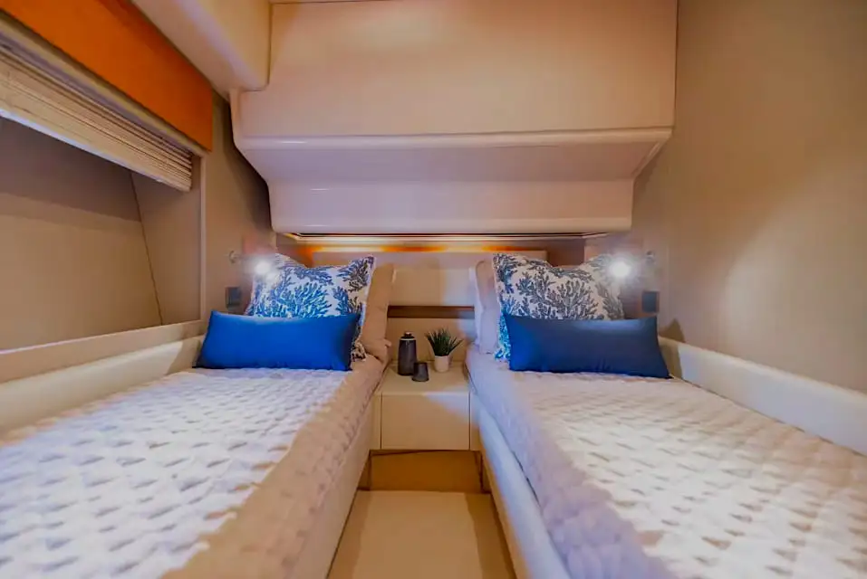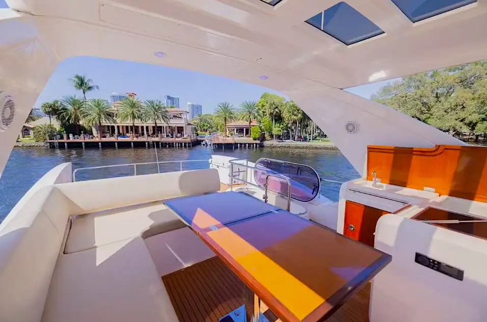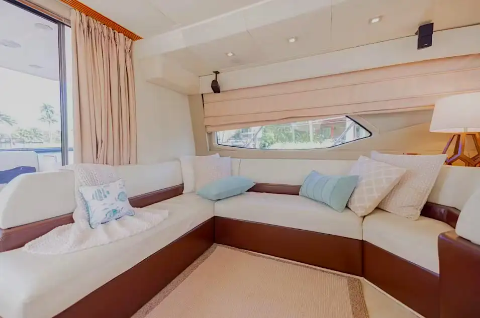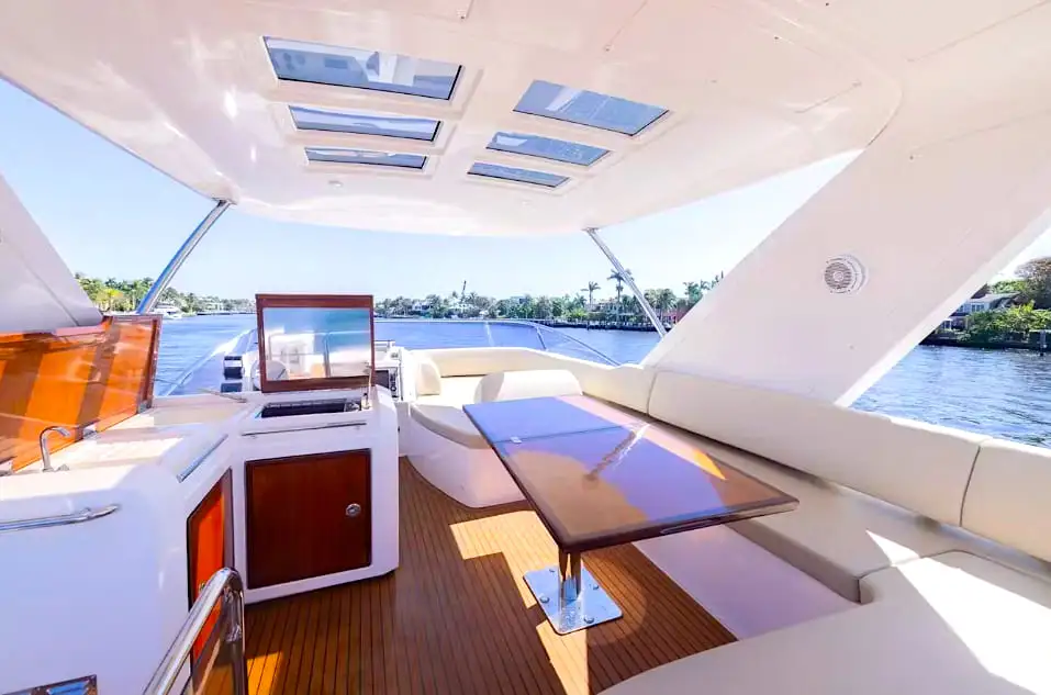 Descubra el lujo y la sofisticación a bordo de “Freedom”, un elegante Azimut de 60 pies disponible para alquiler en Miami Beach Marina, Florida. Ideal para recorrer la Bahía Biscayne y sus alrededores, este yate destaca como una de las opciones más exclusivas del mercado. Su amplia cubierta exterior es perfecta para relajarse, tomar el sol y disfrutar de vistas espectaculares. Además, cuenta con un avanzado sistema de atraque inalámbrico con joystick, que garantiza maniobras suaves, precisas y seguras, adaptándose con facilidad a cualquier espacio.