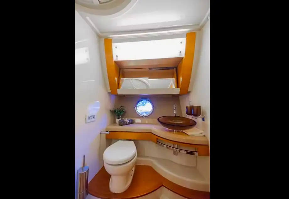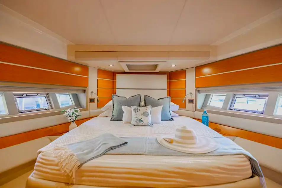 El interior refleja el inconfundible estilo italiano, cuidando cada detalle. Los acabados en roble miel crean un ambiente cálido y acogedor, mientras que su distribución de tres camarotes ofrece comodidad y privacidad para los huéspedes, junto con un área independiente para la tripulación. Sus amplios espacios interiores invitan al descanso y a compartir momentos inolvidables. Reserve hoy y viva una experiencia única de lujo, confort y rendimiento superior a bordo de Freedom.