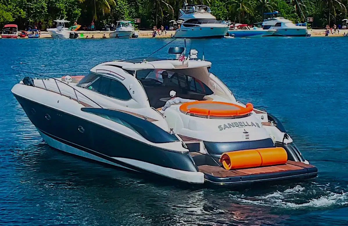 Bienvenido a SanBella II, el yate deportivo SunSeeker de 62 pies ideal para alquileres diarios en Sunny Isles, Florida. Completamente renovado en 2024, combina lujo, rendimiento y confort en cada detalle. Su amplia cubierta exterior ofrece el espacio perfecto para compartir momentos inolvidables con familiares y amigos, mientras que el solárium y las colchonetas delanteras invitan a relajarse bajo el sol. Además, su sistema de sonido Bluetooth le permite disfrutar de su música favorita mientras navega por aguas cristalinas.