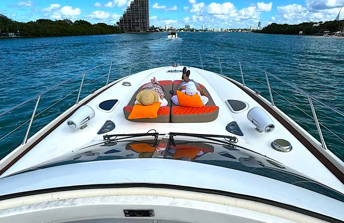 SanBella II cuenta con varios camarotes tipo suite, un amplio salón y una cubierta abierta que ofrece vistas panorámicas y la brisa marina durante su travesía. Su diseño inteligente combina privacidad y comodidad, convirtiéndolo en la opción perfecta para escapadas de lujo, celebraciones exclusivas o un día memorable en el mar. Su aventura comienza en Sunny Isles, con infinitas posibilidades para explorar lugares icónicos como Haulover Sandbar, Beer Can Island, Monument Island, Picnic Island o los canales del centro de Miami. Cada momento a bordo está diseñado para ofrecer una experiencia náutica única y elegante. Reserve hoy su chárter en SanBella II y descubra la auténtica experiencia SunSeeker, donde el lujo y la diversión se encuentran en alta mar.