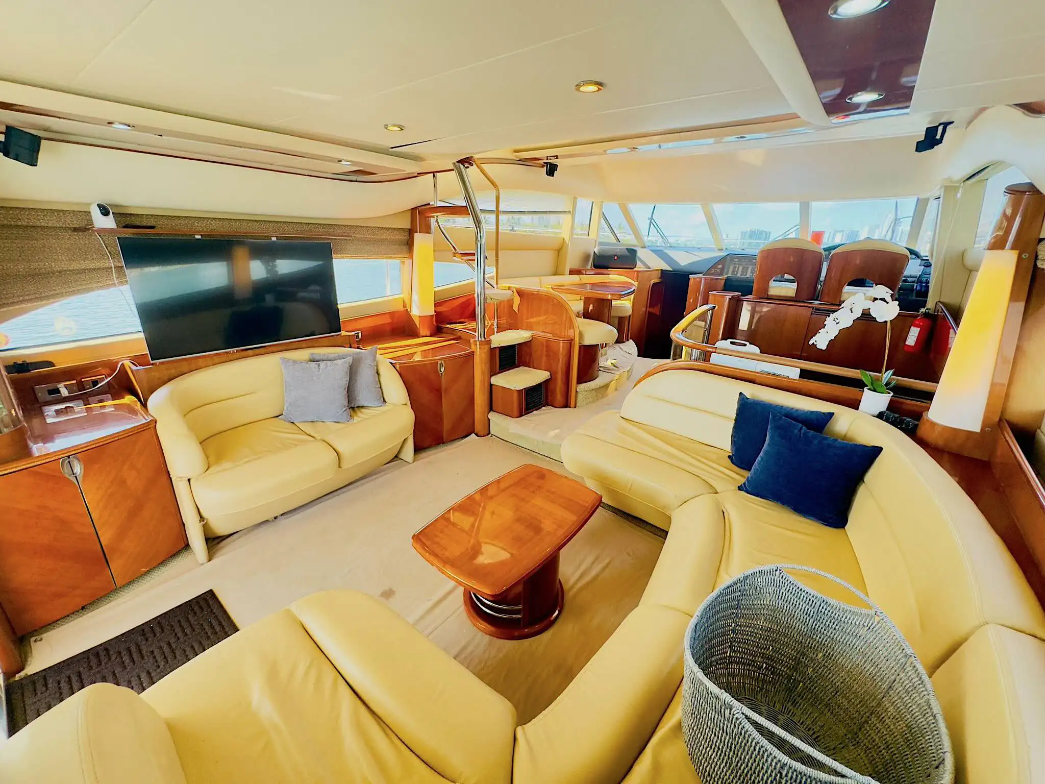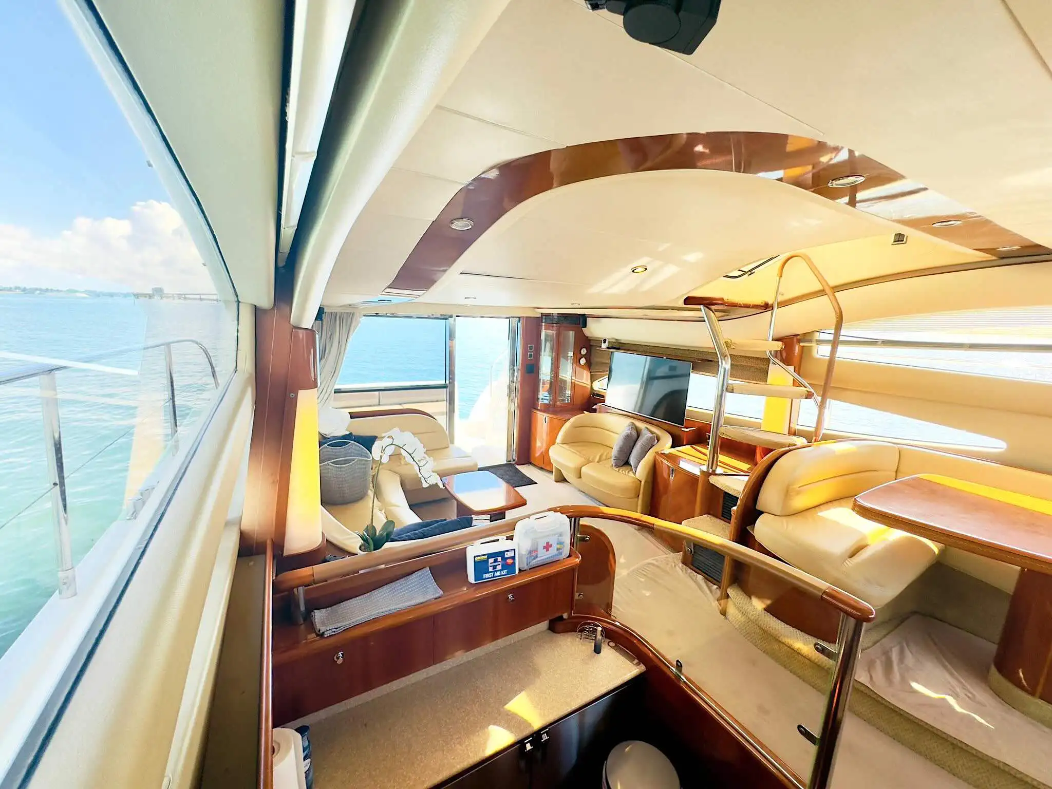 Descubra el lujo y la sofisticación a bordo de “Arcadia”, nuestro Viking de 65 pies disponible para alquiler en Miami, Florida. Este yate clásico de Viking combina un diseño atemporal, confort superior y un rendimiento excepcional en cualquier condición de navegación. Su puente cerrado ofrece protección sin sacrificar las vistas panorámicas, mientras que el salón interior, elegantemente diseñado, crea un ambiente relajado y refinado durante toda la travesía.