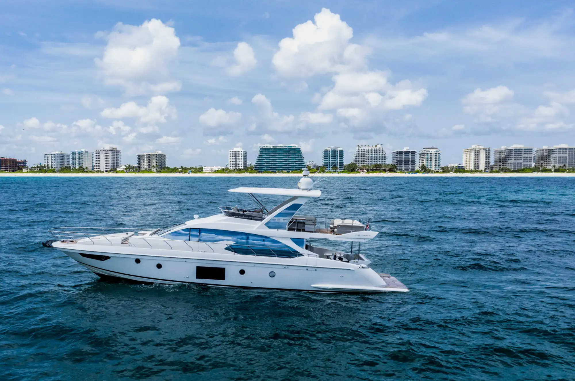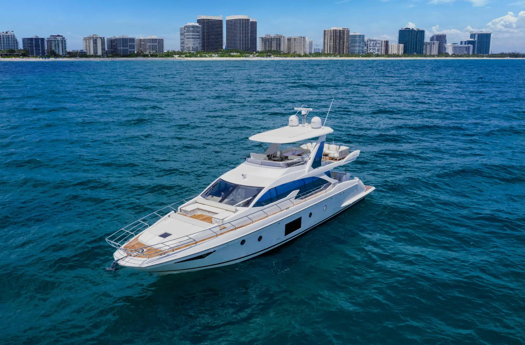 Disfrute del lujo y la comodidad a bordo del Azimut 68′ “Le Grand Bleu”, disponible para alquiler en Haulover Park & Marina, Miami Beach, Florida. Este elegante yate combina un rendimiento excepcional con confort de primer nivel, consolidándose como un referente en su categoría. Sus amplias zonas exteriores, incluido el flybridge y la cubierta de popa, son ideales para tomar el sol, relajarse o disfrutar de cenas al aire libre mientras navega por las cristalinas aguas del sur de Florida.