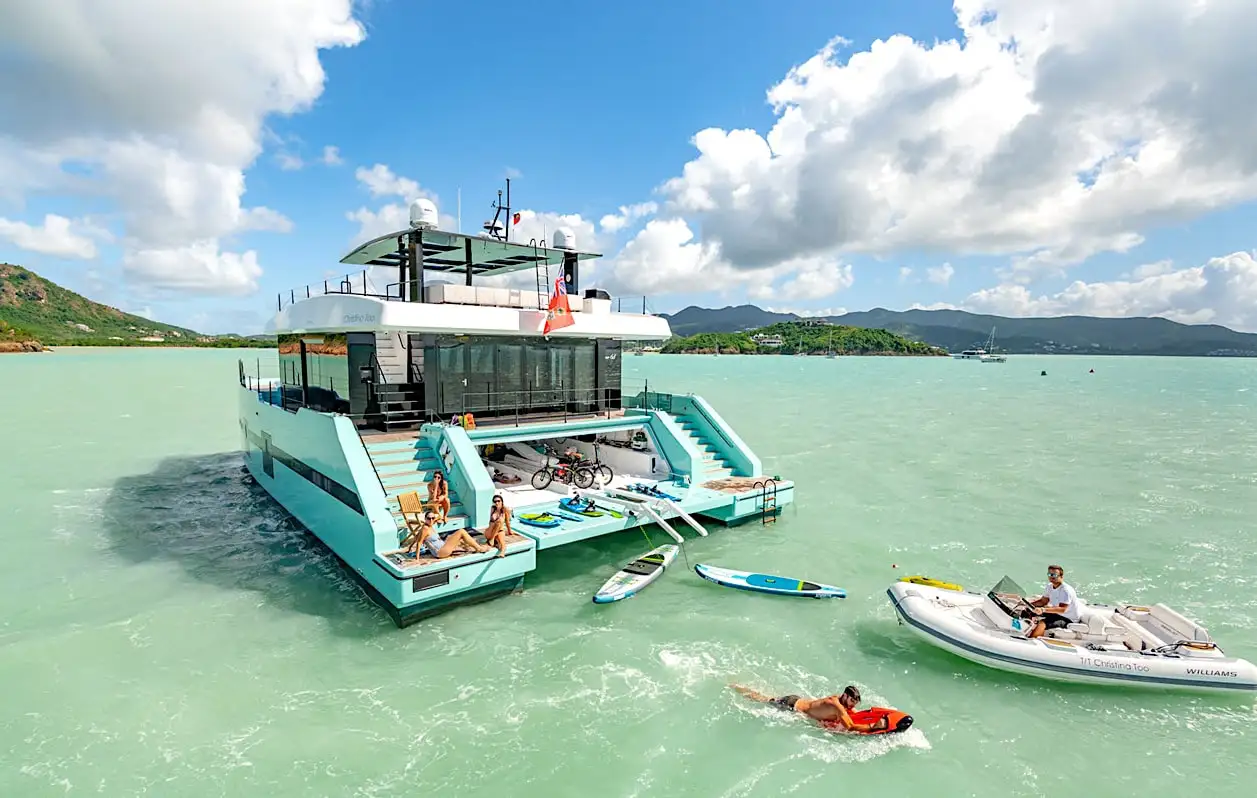 Alquila “Blue”, un lujoso catamarán Sunreef de 70 pies en Haulover Park & Marina, Miami Beach. Este impresionante barco combina diseño moderno con elegancia atemporal, convirtiéndose en un referente de lujo en su categoría. Perfecto para amantes del mar y viajeros exigentes, “Blue” ofrece espacios amplios y sofisticados, incluyendo terrazas con vistas panorámicas, un espectacular flybridge, salones elegantes y camarotes tipo suite diseñados para garantizar privacidad y relajación total. Cada detalle está pensado para ofrecer confort excepcional y una experiencia única en el mar.
