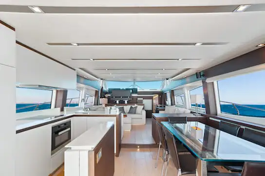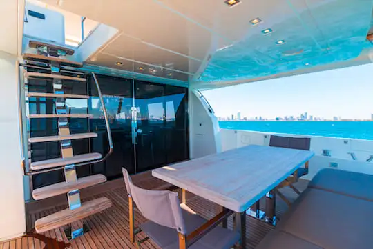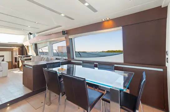 El lujo del Prestige se refleja en su diseño sofisticado y en sus comodidades contemporáneas, pensadas para una experiencia náutica excepcional. Ofrece alojamiento para hasta 8 huéspedes en 4 espaciosos camarotes, además de áreas independientes para la tripulación, que incluye capitán, azafata y segundo oficial, garantizando un servicio atento y profesional. Ideal para escapadas privadas o encuentros con amigos y familiares, este yate convierte cada travesía por la costa de Miami en una experiencia de confort, elegancia y tranquilidad, con tarifas todo incluido y sin cargos ocultos.