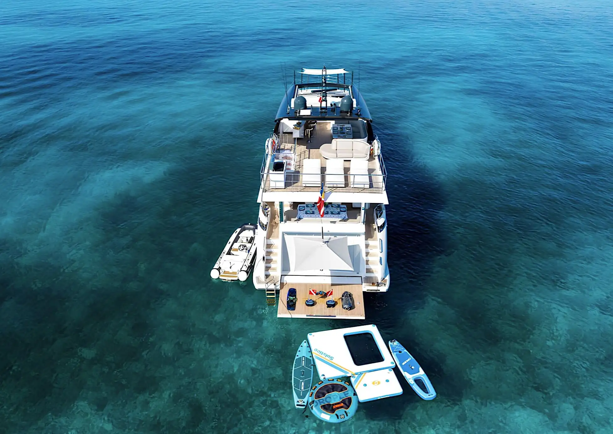 Este exclusivo yate cuenta con alojamiento para hasta 10 huéspedes en 5 camarotes de lujo, incluyendo una amplia suite principal con cama king size en la cubierta principal, muy apreciada por su confort y privacidad. Una tripulación profesional de 4 miembros brinda un servicio atento y personalizado, con áreas independientes que garantizan total discreción para los invitados. Reserve su próxima experiencia de lujo de forma rápida y sencilla. Nuestras tarifas todo incluido evitan cargos ocultos, mientras nuestro equipo especializado se encarga de diseñar un chárter a su medida, asegurando una experiencia náutica verdaderamente inolvidable.