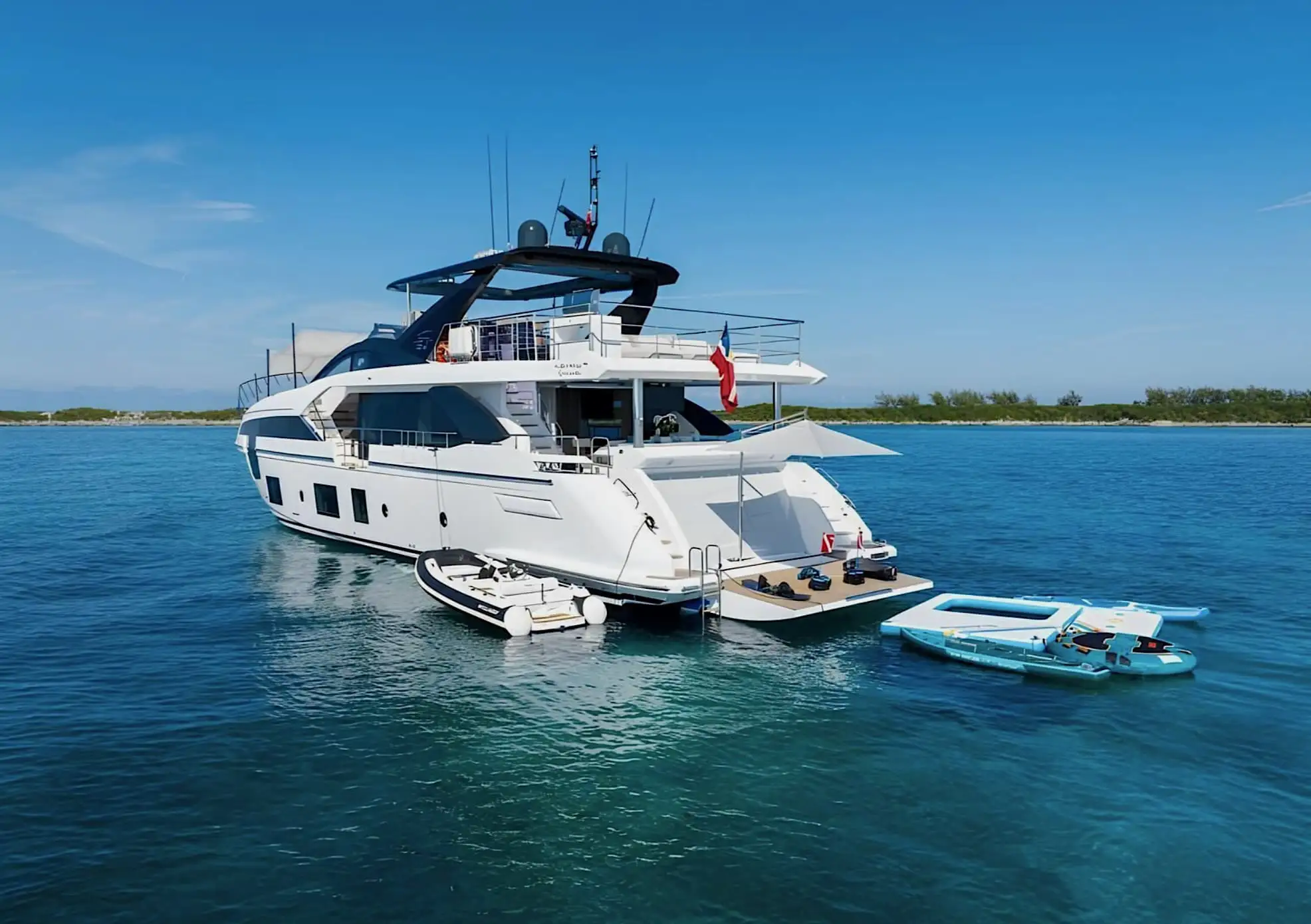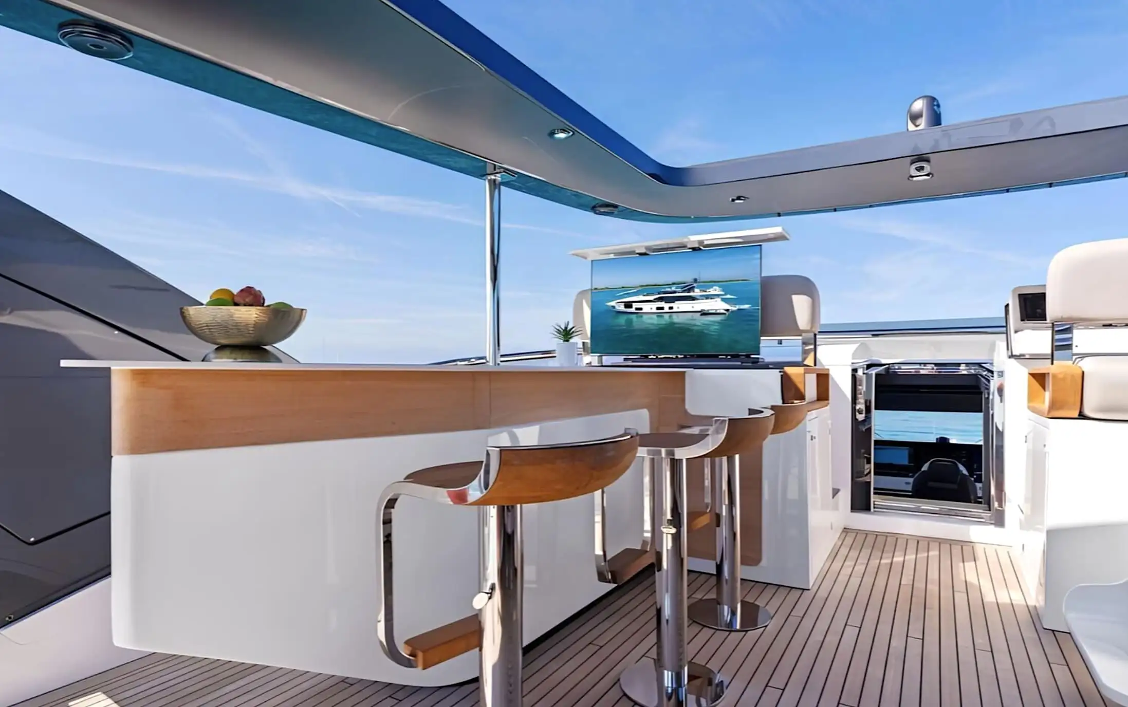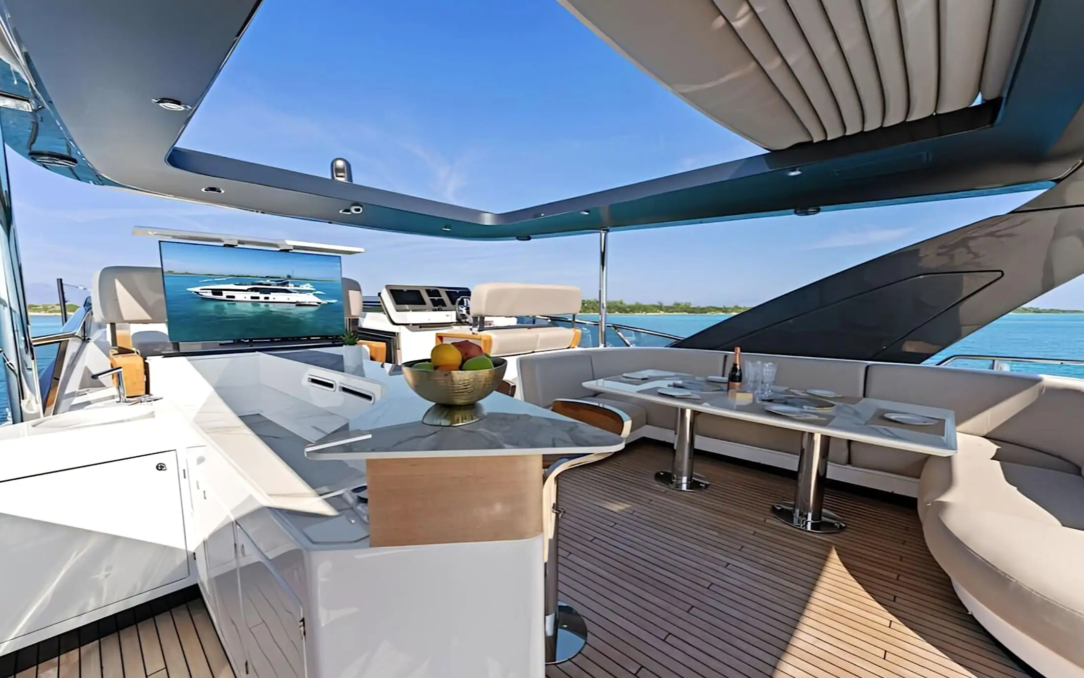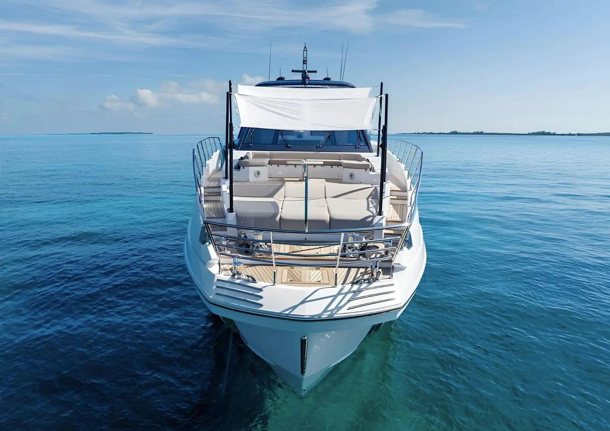Alquile el Azimut “Compass” de 88 pies, actualmente ubicado en Yacht Haven Grande, Miami, uno de los puertos más prestigiosos para alquiler de yates de lujo en Florida. Procedente de las Bahamas, Compass destaca por su presencia imponente y su diseño elegante. Con una velocidad de crucero de 24 nudos y una máxima de 28 nudos, ofrece un equilibrio perfecto entre alto rendimiento y sofisticación, respaldado por tecnología de navegación de última generación que eleva cada travesía en mar abierto.