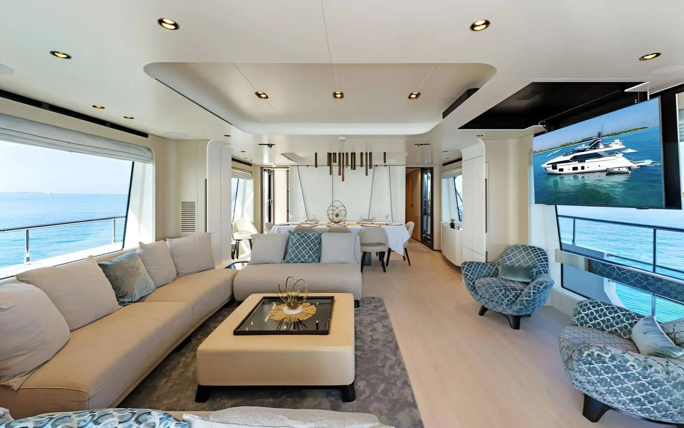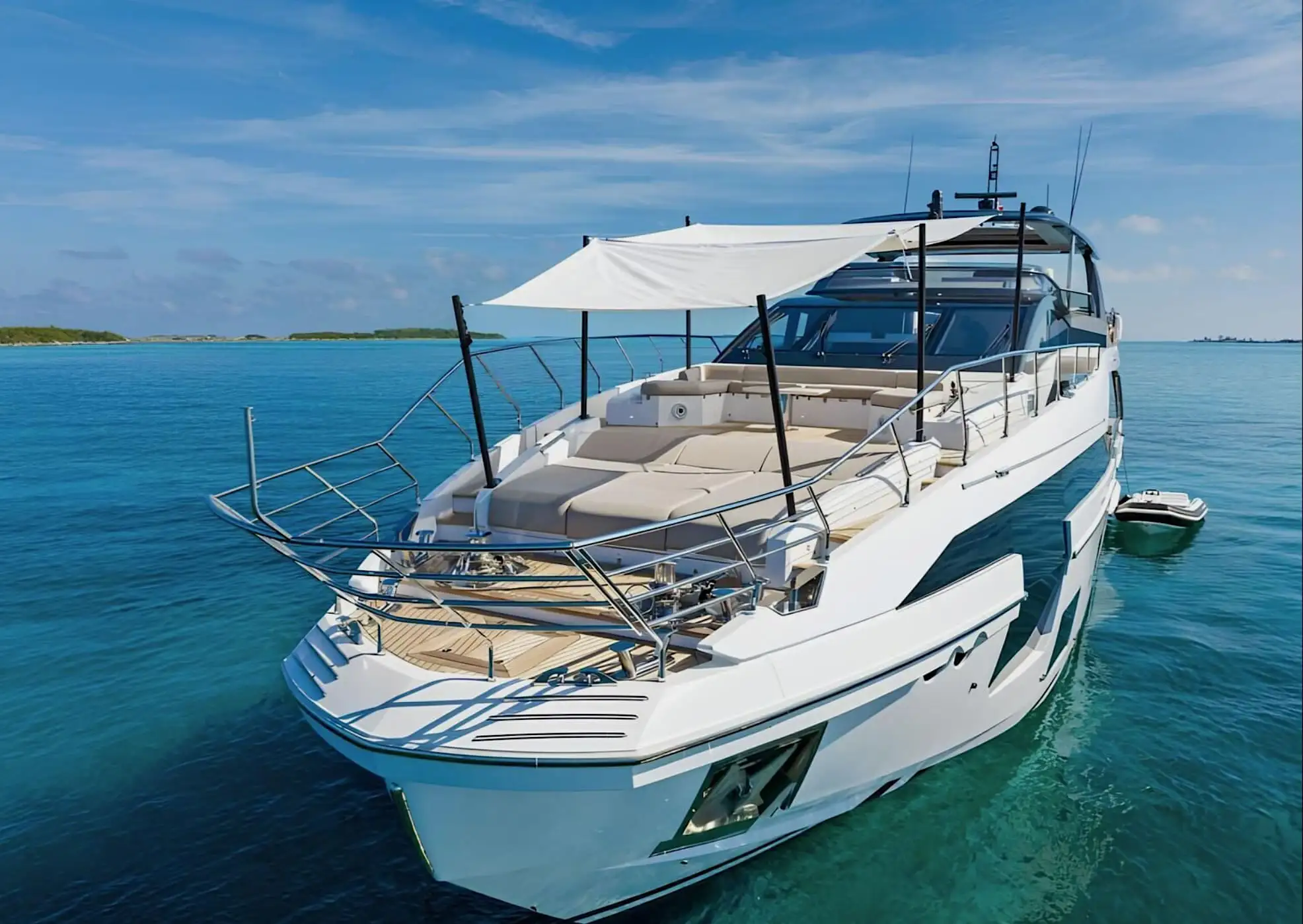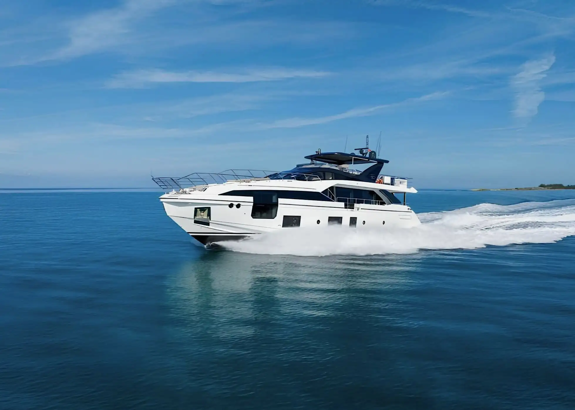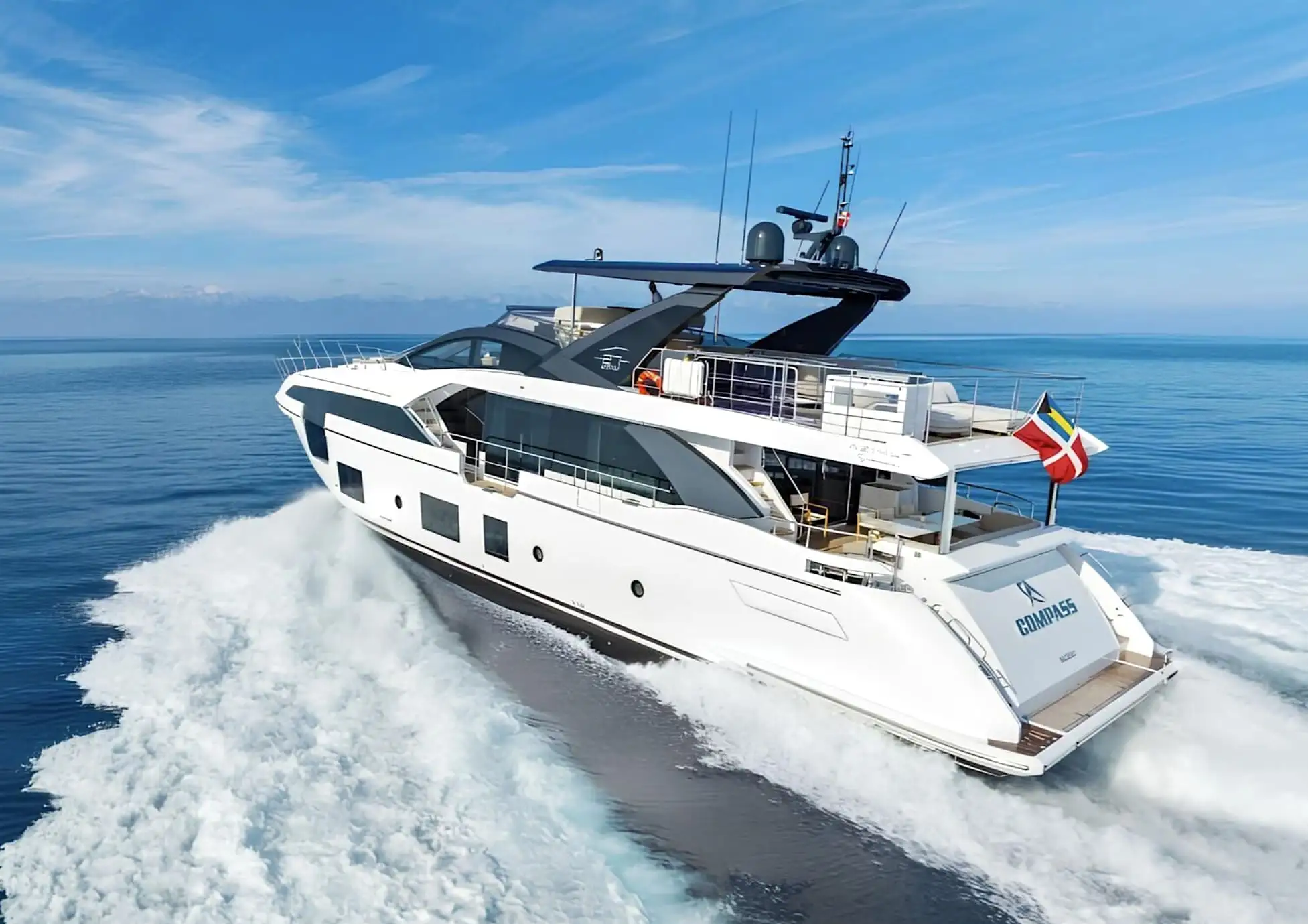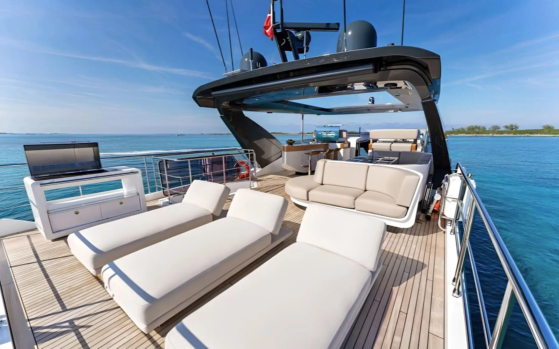 Alquile el Azimut “Compass” de 88 pies, actualmente ubicado en Yacht Haven Grande, Miami, uno de los puertos más prestigiosos para alquiler de yates de lujo en Florida. Procedente de las Bahamas, Compass destaca por su presencia imponente y su diseño elegante. Con una velocidad de crucero de 24 nudos y una máxima de 28 nudos, ofrece un equilibrio perfecto entre alto rendimiento y sofisticación, respaldado por tecnología de navegación de última generación que eleva cada travesía en mar abierto.