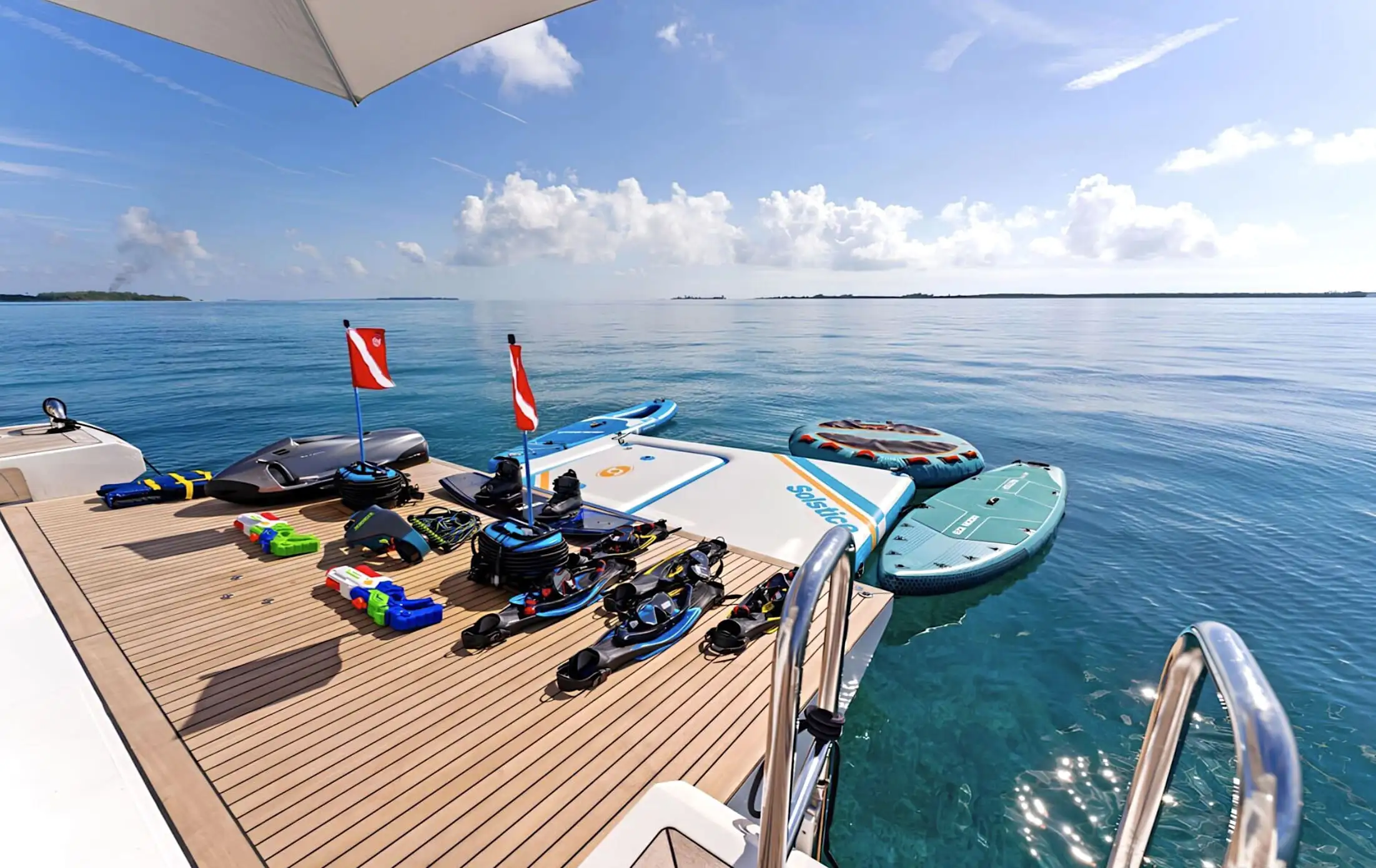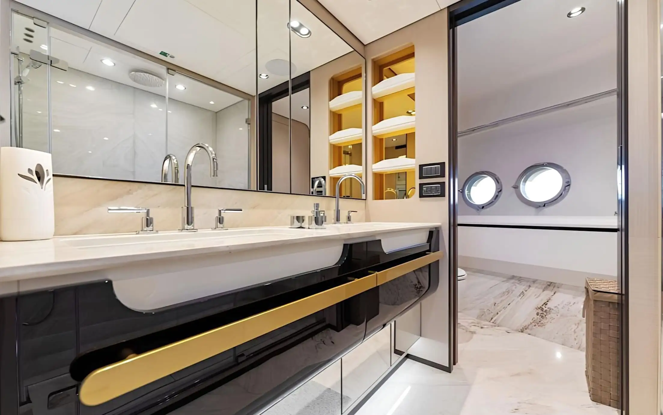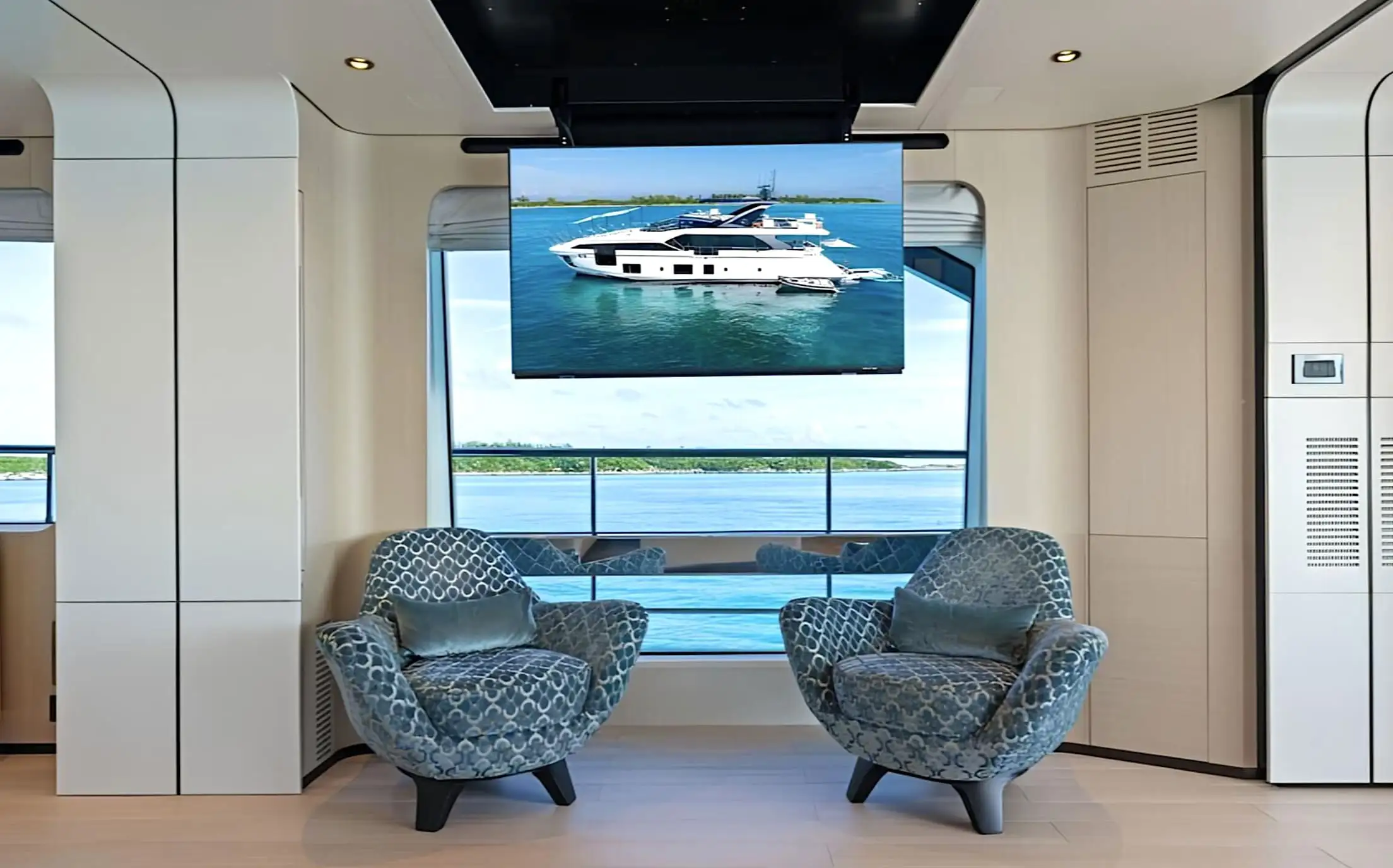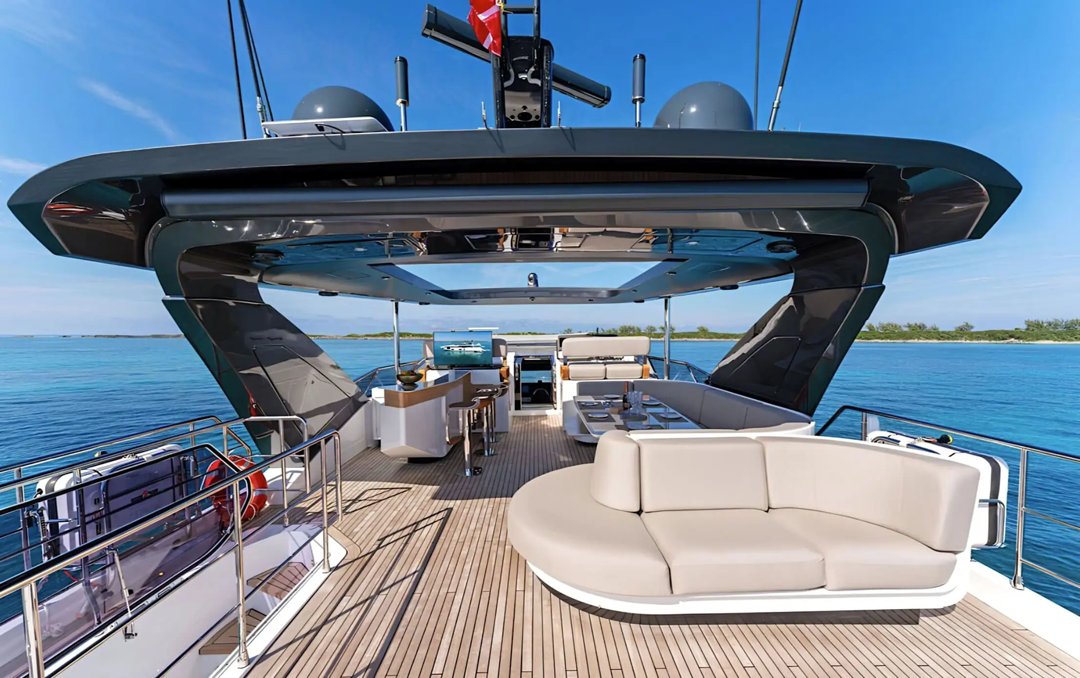 Alquile el Azimut “Compass” de 88 pies, actualmente ubicado en Yacht Haven Grande, Miami, uno de los puertos más prestigiosos para alquiler de yates de lujo en Florida. Procedente de las Bahamas, Compass destaca por su presencia imponente y su diseño elegante. Con una velocidad de crucero de 24 nudos y una máxima de 28 nudos, ofrece un equilibrio perfecto entre alto rendimiento y sofisticación, respaldado por tecnología de navegación de última generación que eleva cada travesía en mar abierto.