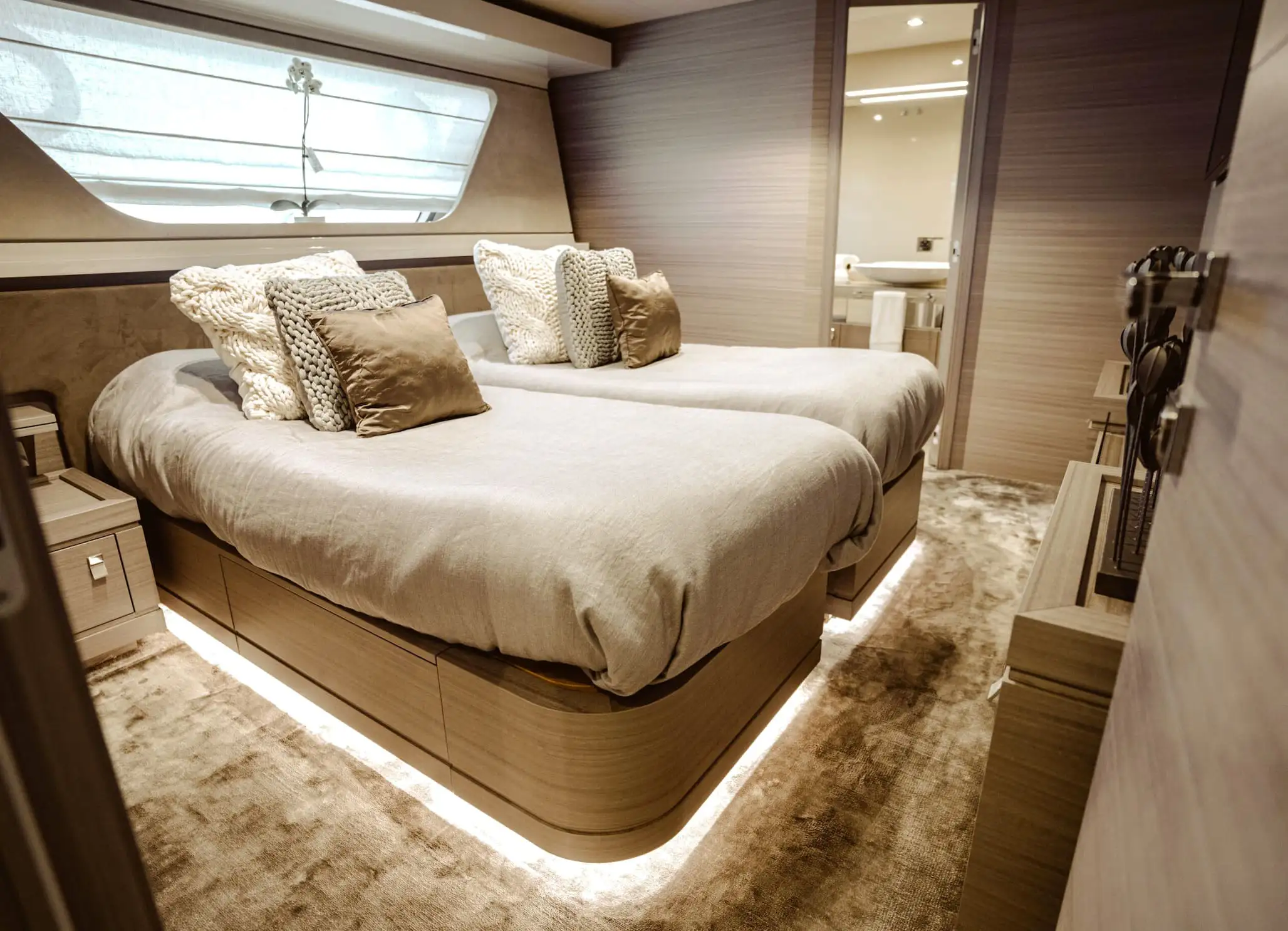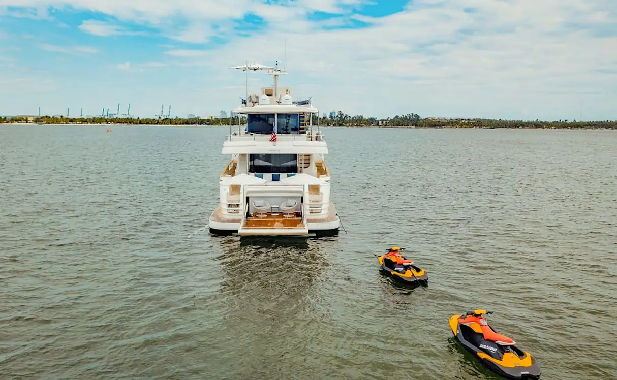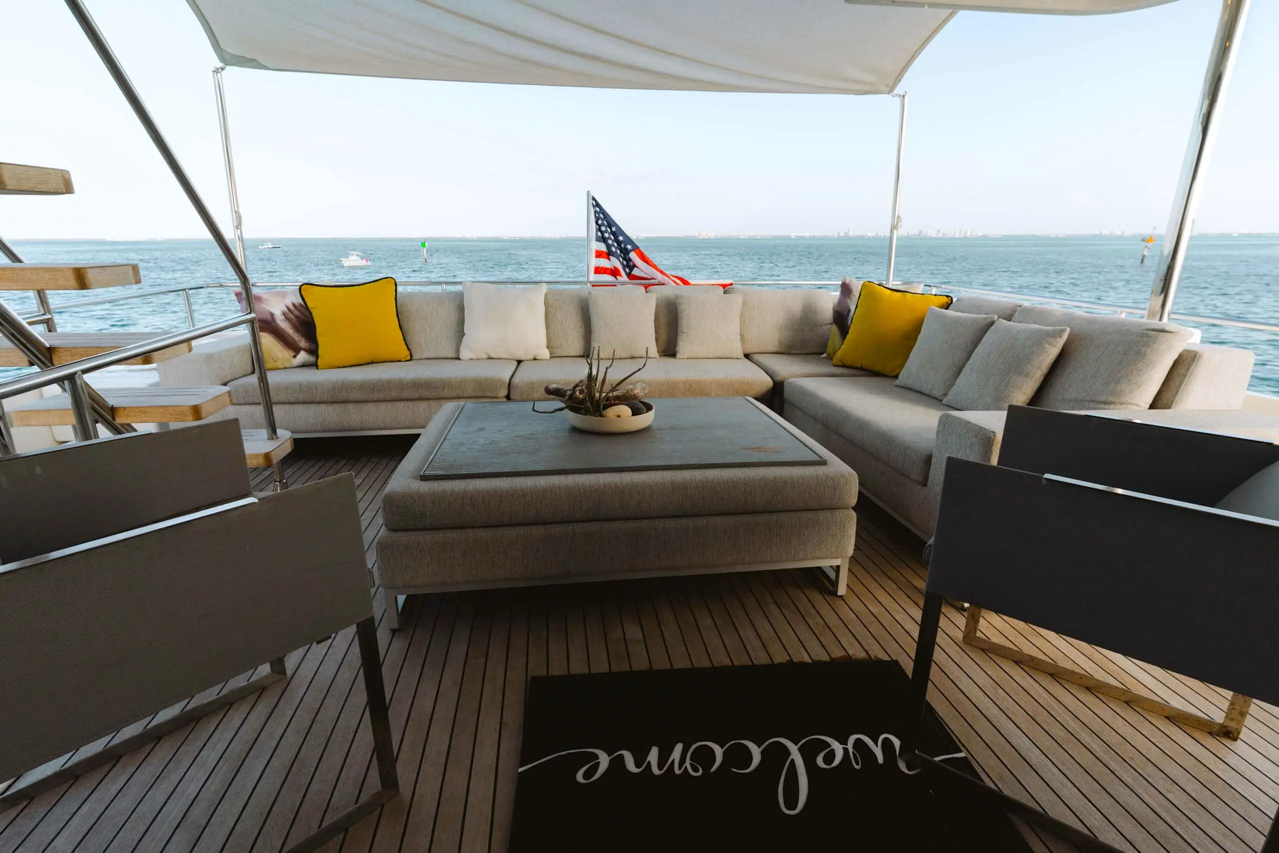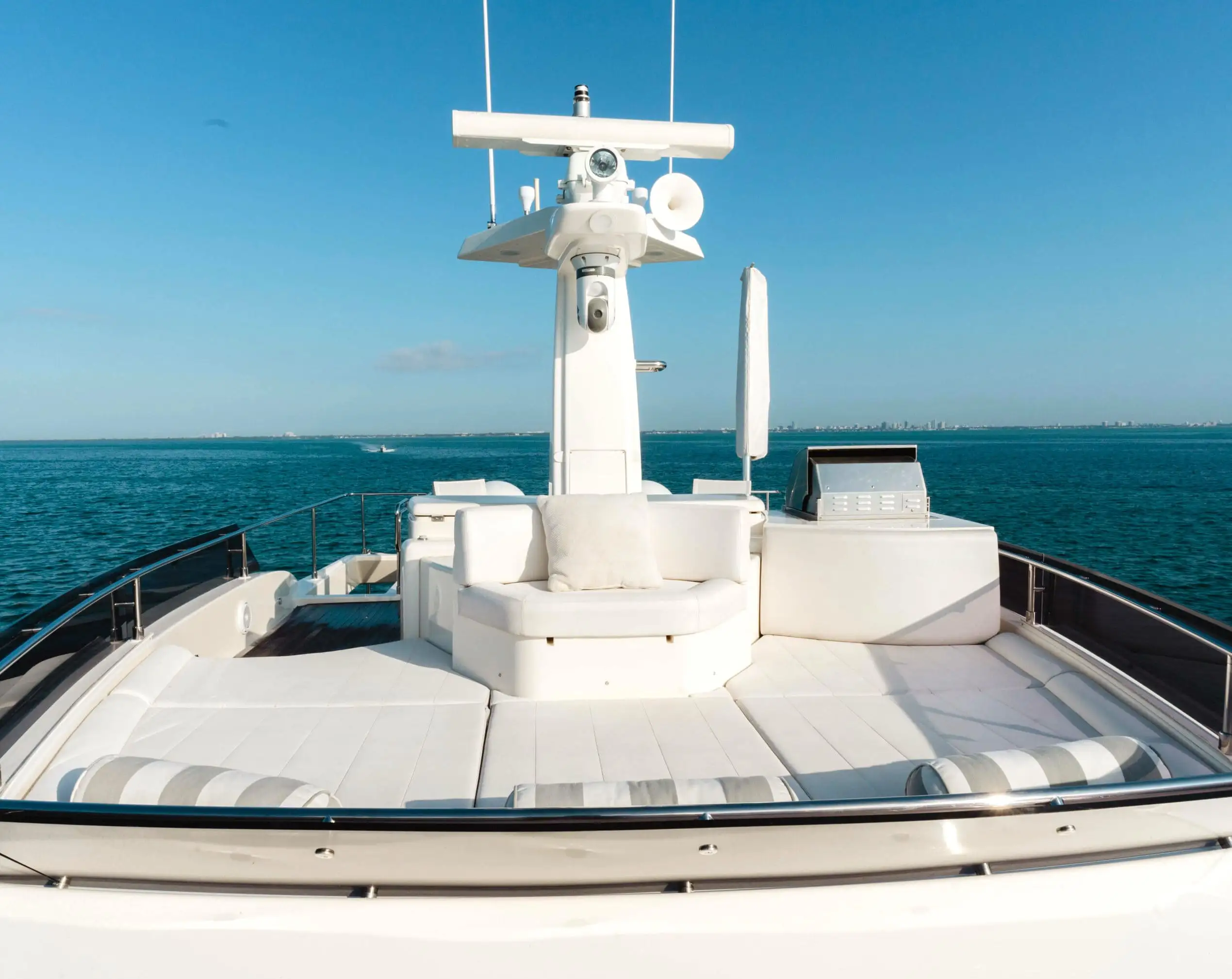 Diseñado para el descanso y el entretenimiento, el Bonus Round cuenta con amplias áreas exteriores perfectas para relajarse, tomar el sol y disfrutar momentos inolvidables en el mar. Es la opción ideal para quienes buscan un alquiler excepcional en Miami, con rutas que pueden incluir Miami, Fort Lauderdale, Palm Beach o incluso las Bahamas. Los amantes de la música apreciarán sus sistemas audiovisuales de última generación, mientras que quienes buscan diversión podrán disfrutar de una completa selección de juguetes acuáticos: dos motos acuáticas, balsa para fiestas, alfombra mágica, flotadores, paddleboard, equipo de pesca y más. Una experiencia única de lujo, diversión y relajación.