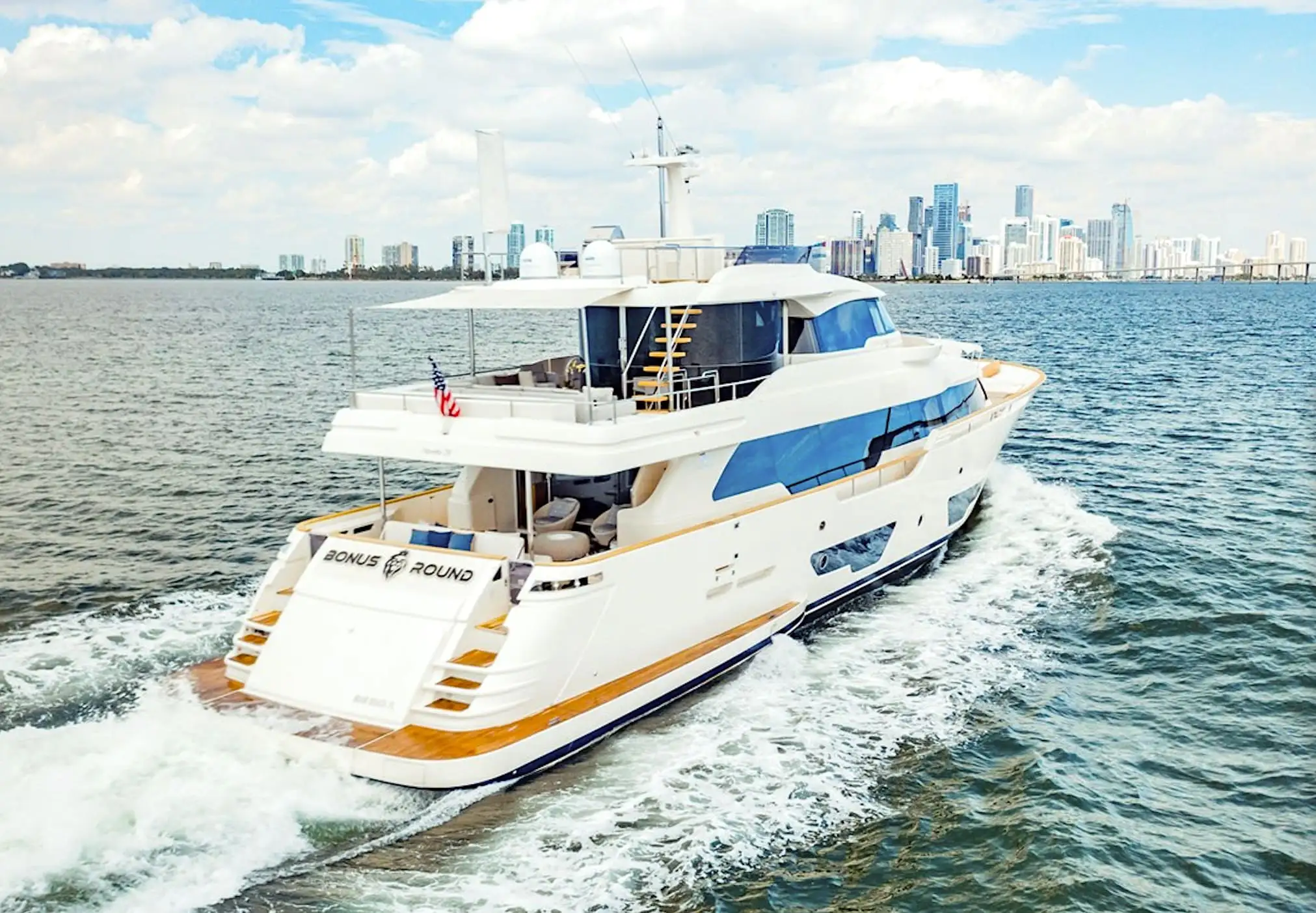 Reserva tu yate de lujo en Yacht Haven Grande @ Island Gardens, Miami, Florida, y vive una experiencia náutica de primer nivel a bordo del Bonus Round, un impresionante Custom Line de 95 pies. Construido en 2018 y renovado por completo en 2022, este elegante yate de cuatro cubiertas combina lujo, confort y un diseño contemporáneo impecable. Su distribución inteligente ofrece cinco camarotes con capacidad para hasta 10 huéspedes, ideal para chárteres de varios días con total comodidad.
