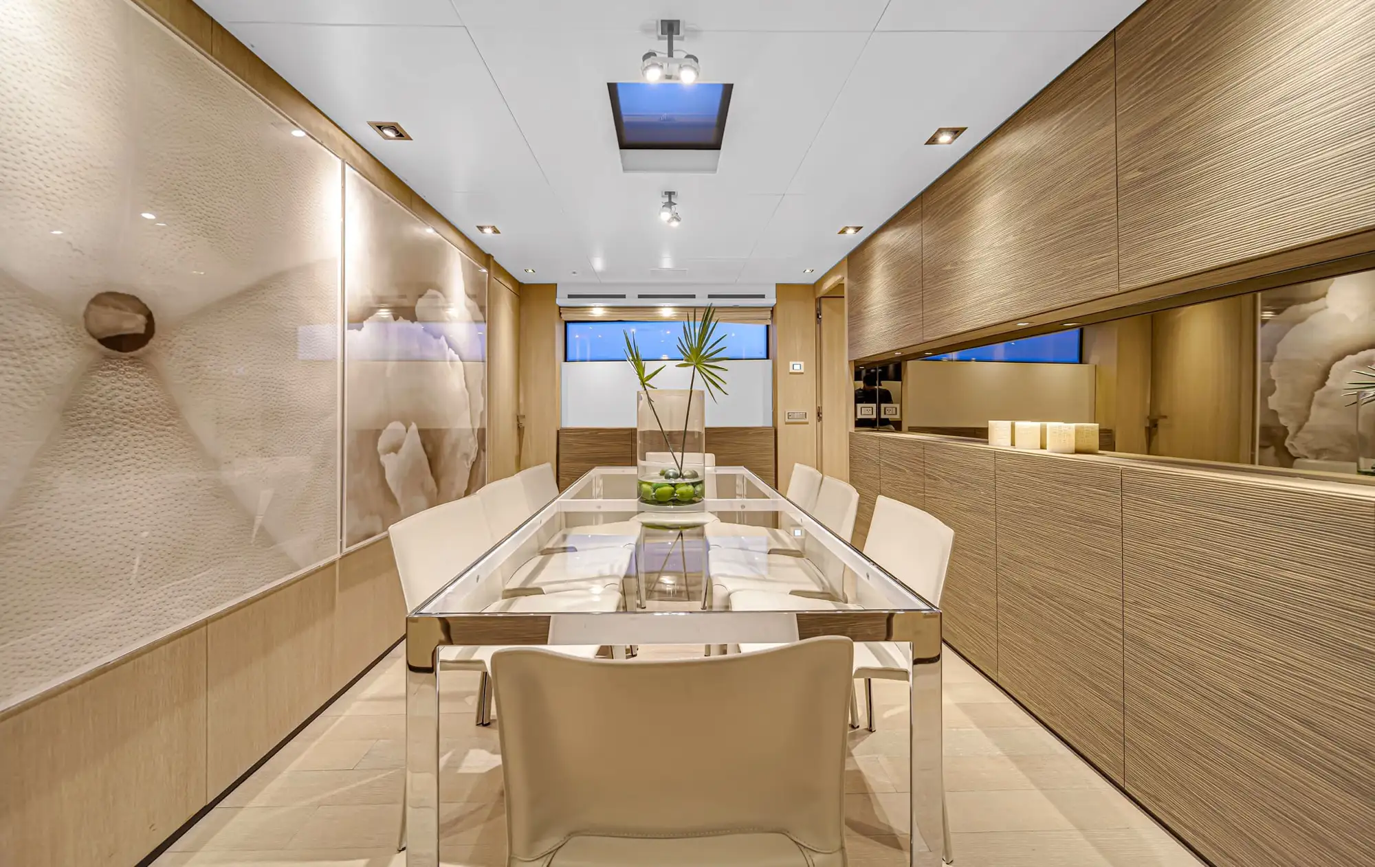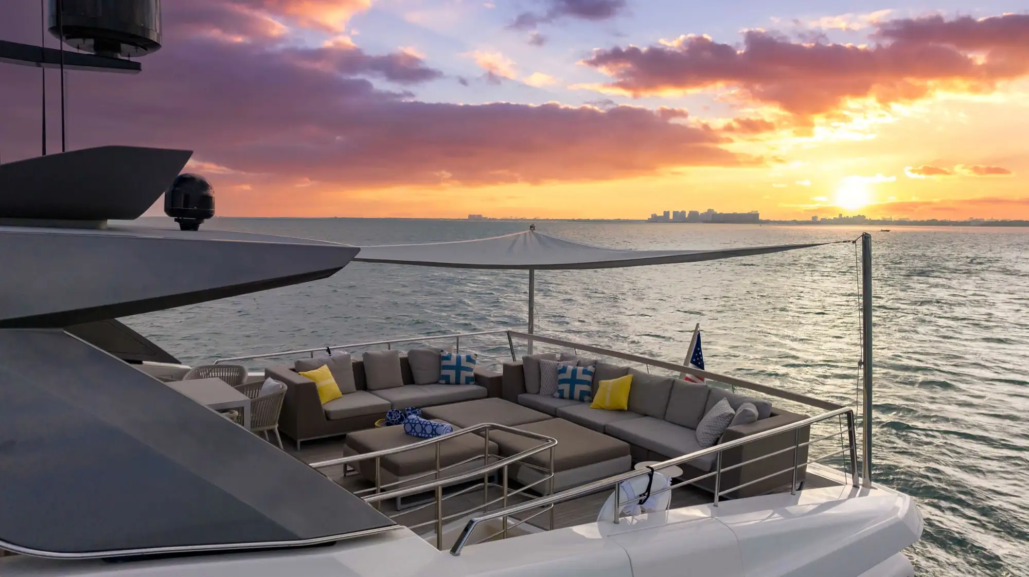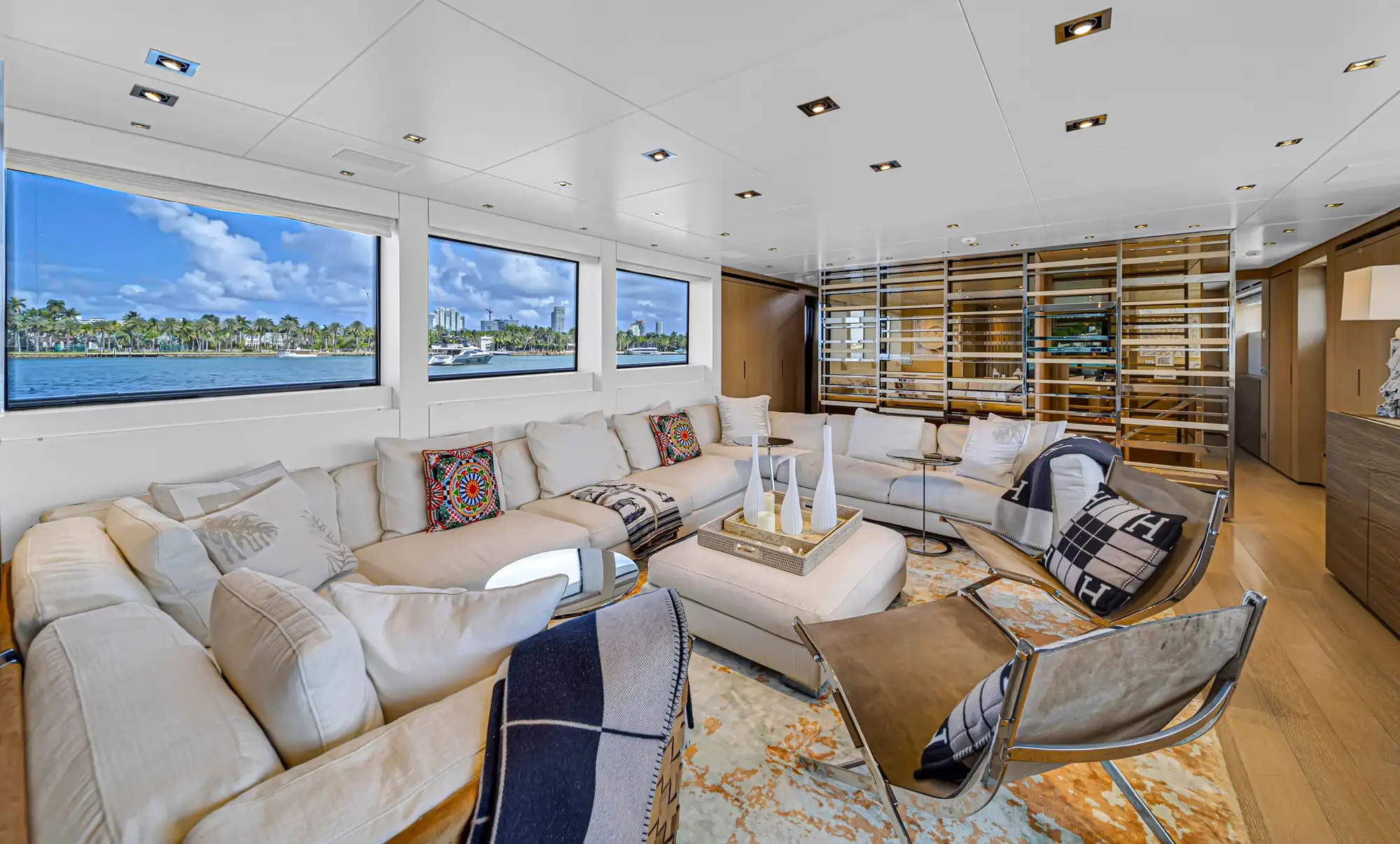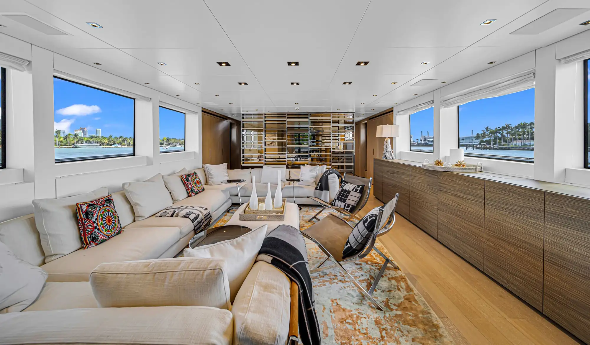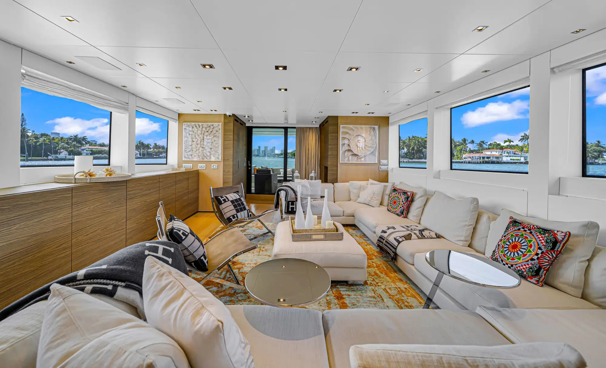 Navegue por la Bahía Vizcaína mientras admira las vistas panorámicas, se relaja en los lujosos salones sociales y disfruta del atento servicio de una tripulación profesional dedicada a cada detalle. Desde relajarse en los soláriums de proa hasta brindar con una copa de champán al atardecer, cada momento a bordo está diseñado con estilo y sofisticación. En su interior, el San Lorenzo de 97 pies cuenta con interiores refinados, amplios camarotes y amplias áreas de entretenimiento al aire libre, ideales tanto para la relajación como para la celebración. Como yate de alquiler de primera clase en Miami Beach, ofrece el equilibrio perfecto entre acabados de alta gama y versatilidad social, lo que lo convierte en una opción excepcional para chárteres de lujo y experiencias memorables en el mar.
